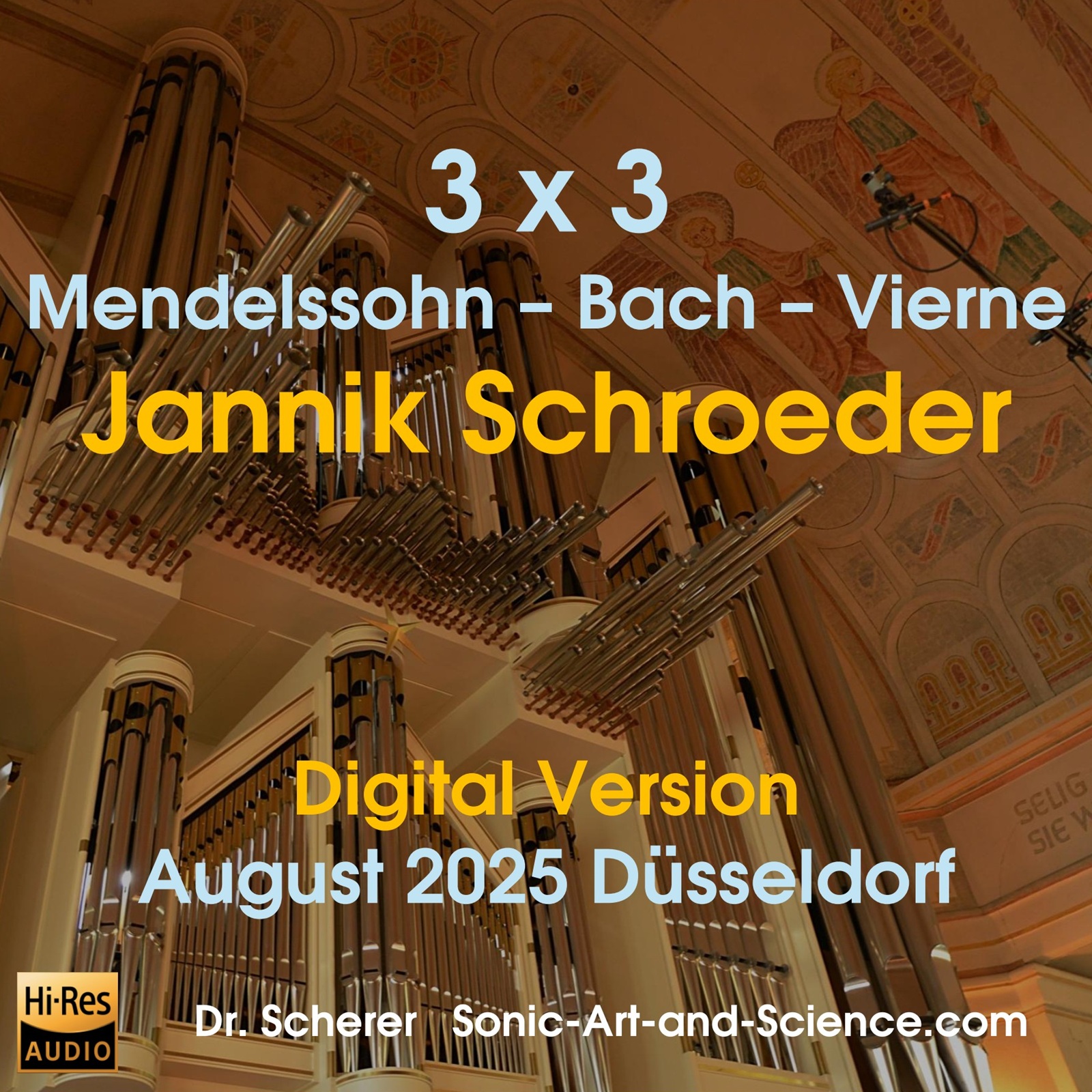 Jannik Schroeder, music director and organist of the Church of the Resurrection in Düsseldorf-Oberkassel, performs an exciting organ concert. Three works with the ordering number three from different centuries — 3 x 3, so to speak — offer a colorful spectrum of magnificent music, performed on the great EUROPA ORGAN “Felix Mendelssohn,” built by W. Sauer..